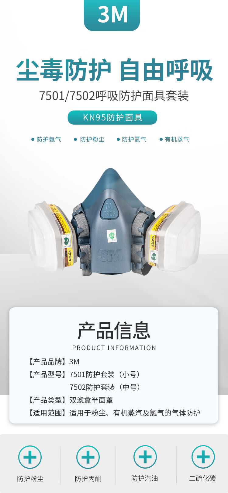 3M面具套装3200+3700+3701CN*1防尘KN95面具套装1套装货期7天- 标准款